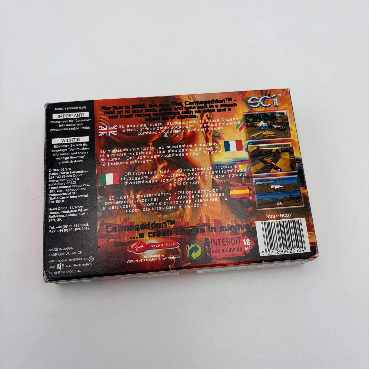 Of je nu een doorgewinterde verzamelaar bent of je Nintendo 64-collectie wilt uitbreiden, Carmageddon 64 is een opvallende en gewilde toevoeging. Dankzij de unieke gameplay en cultstatus blijft deze game populair onder retro gaming fans.