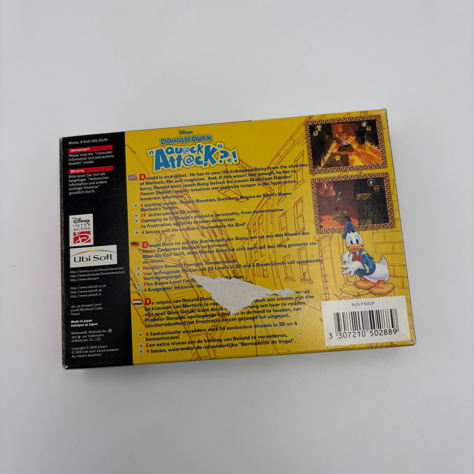 Met Donald Duck: Quack Attack kun je de grappige en uitdagende wereld van Donald Duck volledig ervaren. Ontwijk obstakels, voltooi levels en beleef de klassieke Nintendo 64-sensatie opnieuw. Dit spel combineert nostalgie, kwaliteit en uren speelplezier en is een onmisbare toevoeging voor iedere retro-gamer.