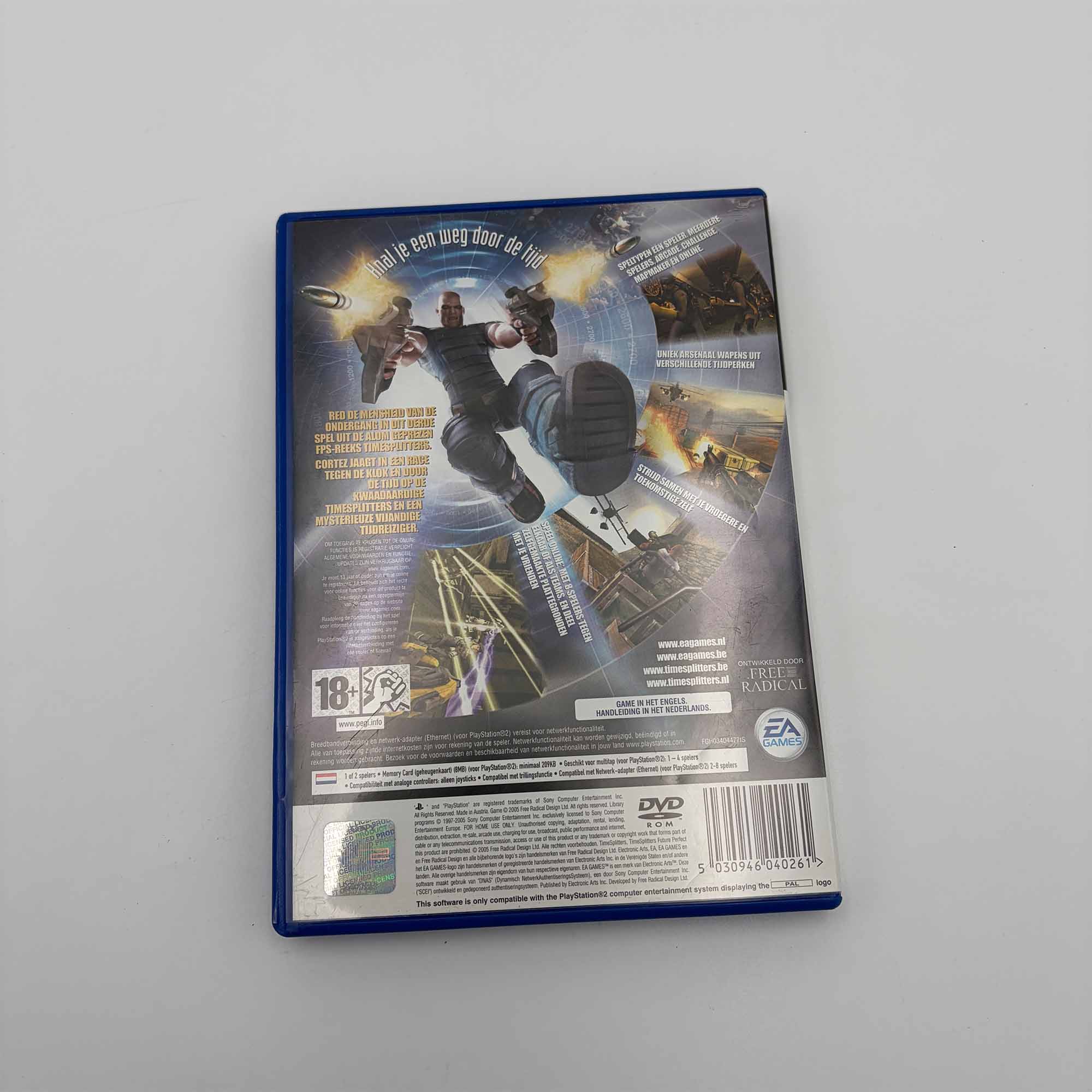 TimeSplitters voor de PlayStation 2 is een snelle en chaotische first-person shooter die bekendstaat om zijn intense actie en arcade-achtige gameplay. In deze game reis je door verschillende tijdperken terwijl je het opneemt tegen vijanden in uiteenlopende missies en uitdagende levels.